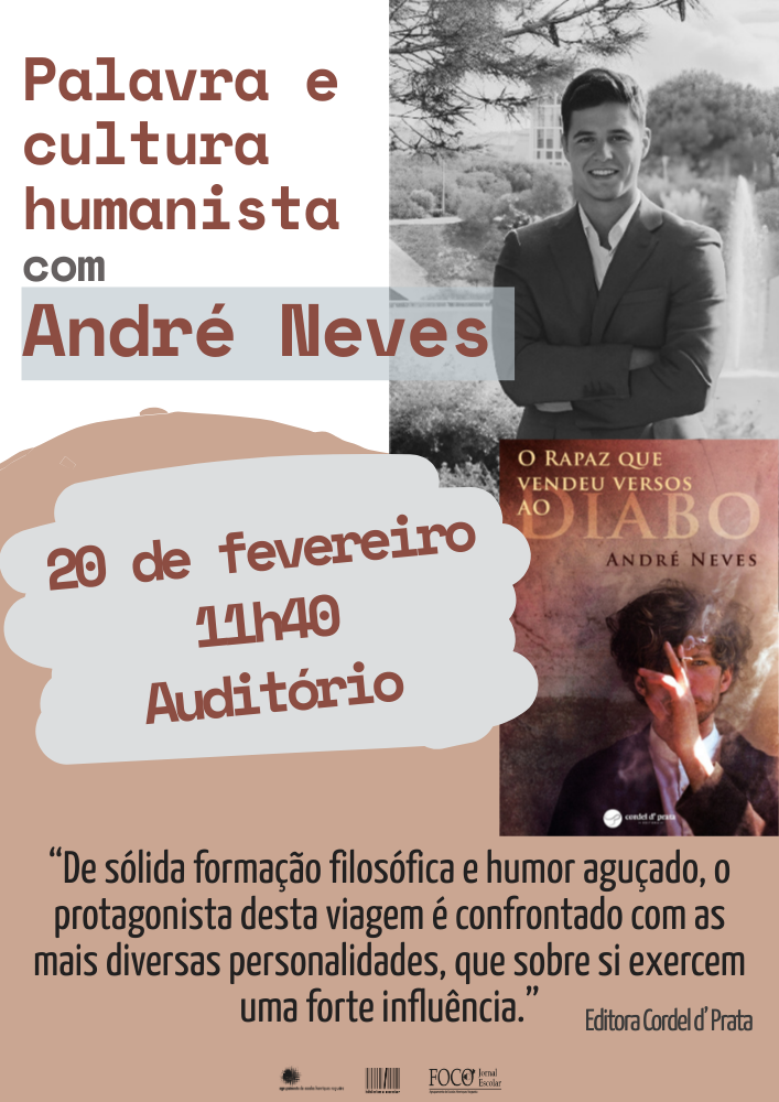 Encontro com João Maria AndréNo dia 31 de março, o nosso agrupamento vai receber o Professor João Maria André, que vem falar com alunos do ensino secundário, em duas sessões, sobre livros, leitura e hospitalidade, no arranque da nossa "Semana da Leitura".